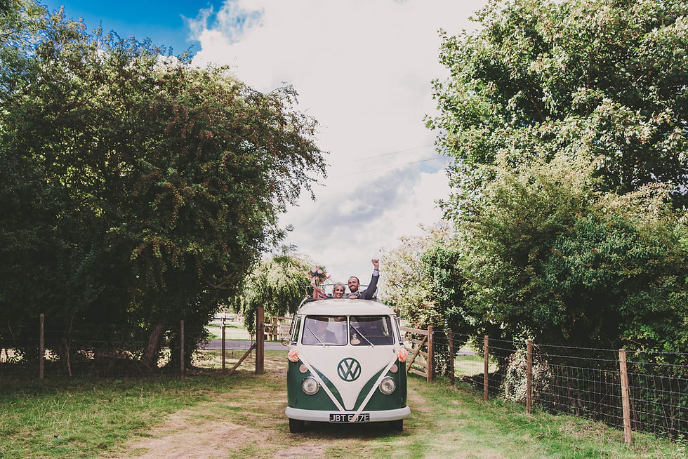 Things got better and better after the ceremony, Tom and Georgia left for the venue in a classic VW Camper and when they arrived were stood up through the sunroof giving us all a cheer. What an entrance...